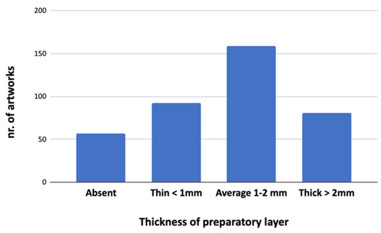Distribution of artworks based on grades of preparatory layer thickness.