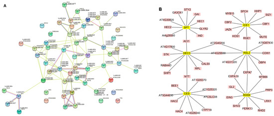 The protein interaction network was generated using the STRING (www.string-db.org (accessed on 3 December 2021)) based on the high homology between LcbHLHs and AtbHLHs proteins. In addition, six LcbHLH proteins with high homology to AtbHLH were selected to map the extrafamilial protein interaction network using Cytoscape 3.8.2 [32].
