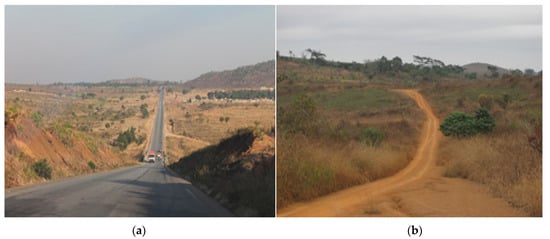 Types of roads in Angola: (a) primary roads and (b) tertiary roads are usually passable in the dry season.