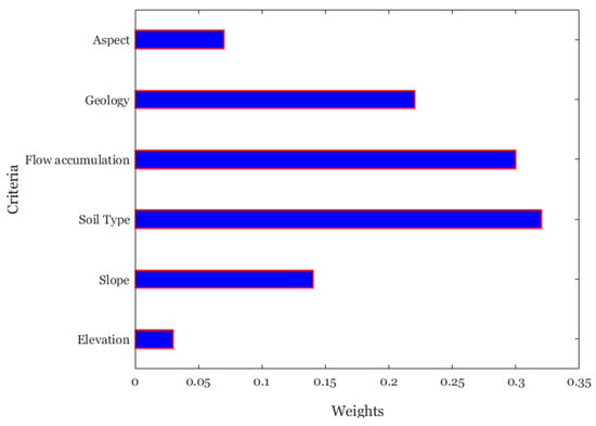In general, the determination and planning of a road is a complex process that requires the consideration of several variables that need to be analyzed simultaneously. During the design of potential routes, all available factors (e.g., slope, contour lines, aspect, geology, protected areas, soil quality, natural reserves, etc.) must be primarily determined using weighting coefficients, and they should also be evaluated and analyzed as a whole [27]. For road construction, soil or geology showed the highest weight. Soil is a primary engineering material for road construction and the main properties required of a road embankment are minimal potential for movement and erosion [56].
