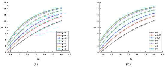 Four different load combinations (dead load + residential floor live load (D + R), dead load + office floor live load (D + O), dead load + wind load (D + W), and dead load + snow load (D + S)) were considered in this study. Seven different load effect ratios (0, 0.25, 0.5, 1.0, 2.0, 3.0, and 4.0) were calculated by the ratio of the variable load effect to the permanent load. The JC method was used for reliability analysis to obtain the relationship curves between the reliability indexes and the resistance factors. In this study, the results of compression strength parallel to the grain, bending strength, and tensile strength parallel to the grain tests are displayed in Figure 6, Figure 7 and Figure 8. As can be seen from Figure 6, Figure 7 and Figure 8, with the increase of the resistance factors, the reliability indexes show a trend of gradual increase. The load ratios have a significant influence on the reliability indexes, and for the same resistance factors, the reliability indexes show an increasing trend with the increase of the load ratios. With the increase of load ratios, the magnitude of the increase of reliability indexes decreases gradually. Under D + R and D + O load combinations, the magnitude of increase of reliability indexes with the increase of load ratios is greater than that of D + W and D + S load combinations.
