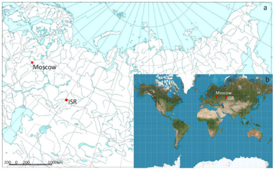 Location of the study area: (a) in Russia and (b) in the world.