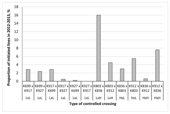 Number (N) of embryogenic lines initiated from the seed embryo explants from the controlled crossings in 2012–2013.