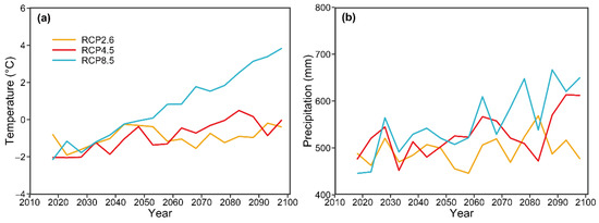 2 concentrations between the different GCMs (RCP2.6, RCP4.5, and RCP8.5) on MAT and MAP were similar to the patterns in emission intensity; for example, MAT under PRC 8.5 (high emission intensity) exhibited the sharpest increase, followed by RCP4.5 (intermediate emission intensity) and RCP2.6 (low peak-and-decay emission intensity) (