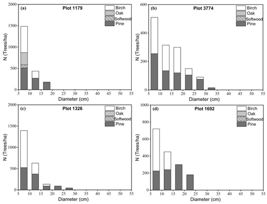 18]. Tree size-class models and individual-tree models, which employ a finer modeling resolution, i.e., diameter class and individual tree, respectively, are used to assess more complex species compositions and structures [