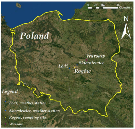 The site is located in Central Poland 51°48′42.30″ N 19°49′55.55″ E, 200 m asl, 100 km to the south of Warsaw, at the Rogów, Forest Experimental Station, which is managed by Warsaw University of Life Science-SGGW (Figure 1).