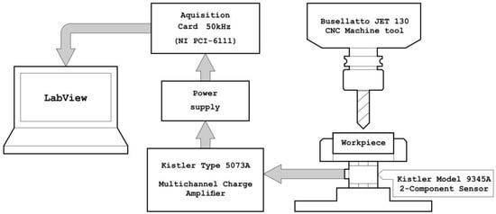 The scheme of the system used for measuring cutting forces during the machining testing.