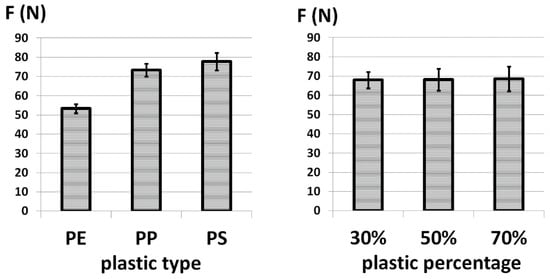 The effect of the type of plastic and the wood–plastic ratio on the feed force (F [N]).