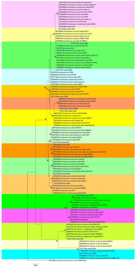 3.4. Identification of Strains and Phylogenetic Analysis