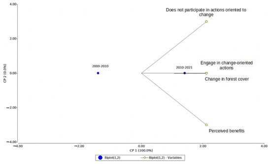 Principal Component Analysis between variables related to the change in forest cover in Mirador Sur Park according to the visitation period (Appendix C).