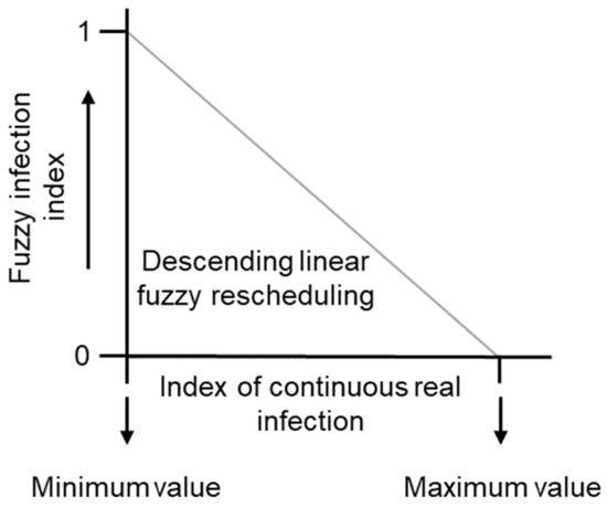 Fuzzy function for monolithically decreasing linear standardization of the infection index.