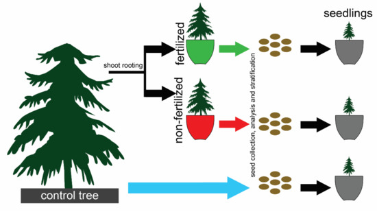 - Pers-Kamczyc, E.; Mąderek, E.; Kamczyc, J. Seed quantity or quality?—Reproductive responses of female of two dioecious woody species to long term-fertilisation. Int. J. Mol. Sci. 2022, 23, 3187. [Google Scholar] [CrossRef]