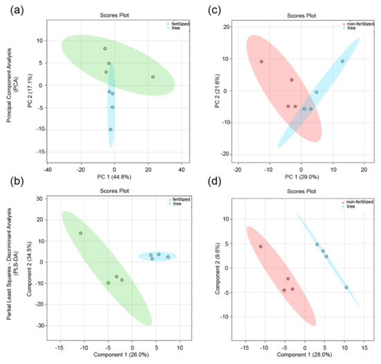 - Xia, J.; Psychogios, N.; Young, N.; Wishart, D.S. MetaboAnalyst: A web server for metabolomic data analysis and interpretation. Nucleic Acids Res. 2009, 37, W652–W660. [Google Scholar] [CrossRef] [Green Version]