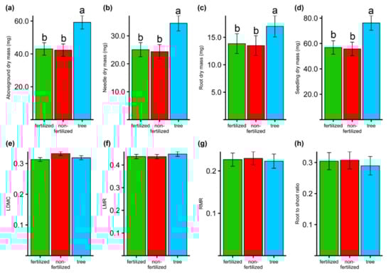 - Mašková, T.; Herben, T. Root:shoot ratio in developing seedlings: How seedlings change their allocation in response to seed mass and ambient nutrient supply. Ecol. Evol. 2018, 8, 7143–7150. [Google Scholar] [CrossRef] [Green Version]