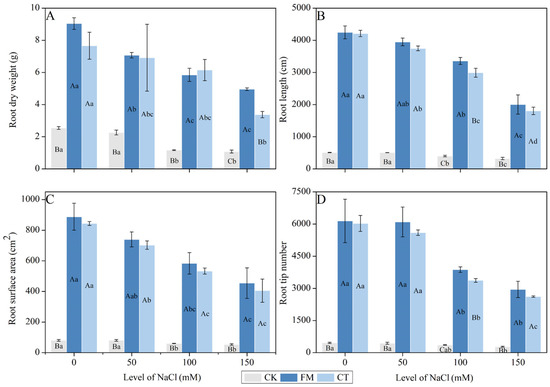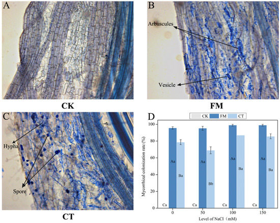 4.1. Responses of Root Growth to AMF Inoculation under Salt Stress