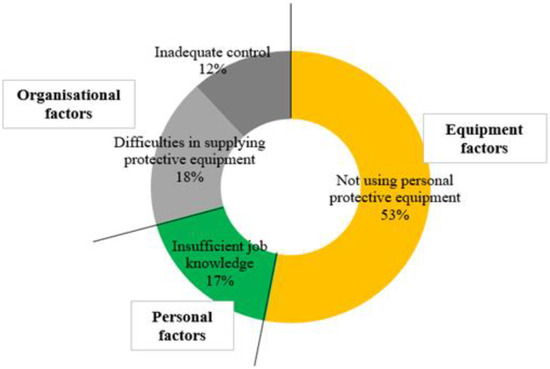 Within this category of risk factors, difficulties in supplying the protective equipment (25%), and inadequate control of equipment use (22.2%) are the most frequently identified issues (Figure 1).
