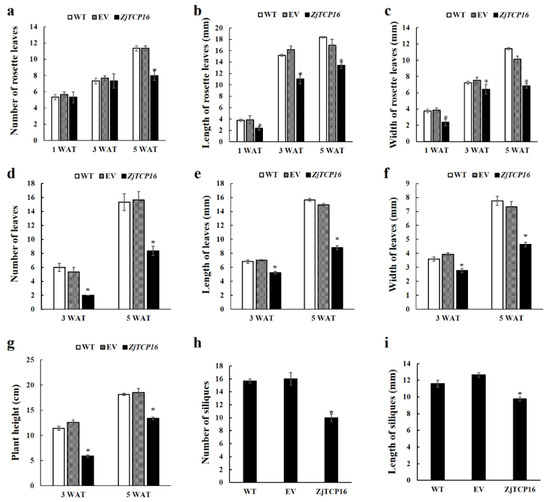 3.6. ZjTCP16 Altered the Expression Levels of Genes Involved in Plant Morphogenesis