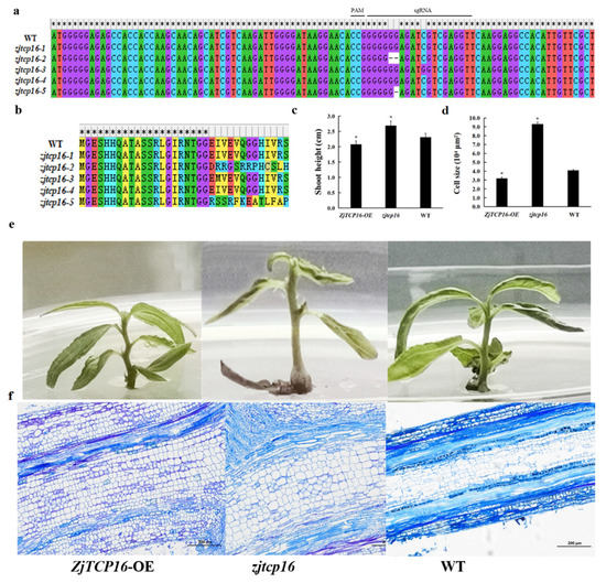 APA StyleYang, Q., Li, Q., Gu, L., Chen, P., Zhang, Y., Li, Y., Chen, Y., Ye, X., Tan, B., Zheng, X., Li, J., & Feng, J. (2022). The Jujube TCP Transcription Factor ZjTCP16 Regulates Plant Growth and Cell Size by Affecting the Expression of Genes Involved in Plant Morphogenesis. Forests, 13(5), 723. https://doi.org/10.3390/f13050723