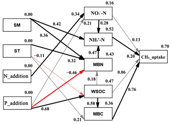 3.4. Pathway Determining N2O Emissions and CH4 Uptakes under N and P Additions