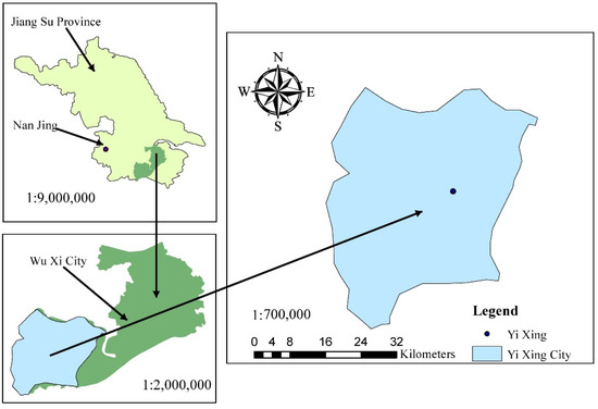 The study area is located on the Yixing state-owned forest farm, Jiangsu Province, western China (31°13′–31°15′ N, 119°41′–119°44′ E) (Figure 1). Yixing City covers a total area of 1996.6 square kilometers. It belongs to the junction of the northern scattered bamboo area and Jiangnan bamboo area and is at the northeast edge of the Moso bamboo distribution area.