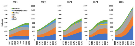 Global primary energy production for IPCC Shared Socioeconomic Pathways (source: [35]).