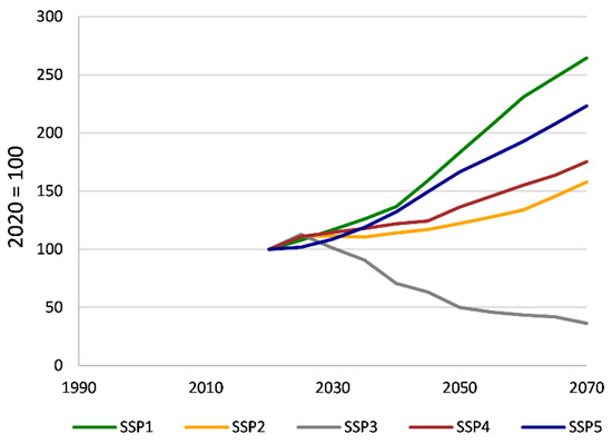 - IIASA. Shared Socioeconomic Pathway Database. 2020. Available online: http://iiasa.ac.at/web/home/research/researchPrograms/Energy/SSP_Scenario_Database.html (accessed on 10 August 2021).