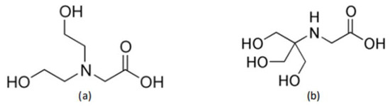 In this study, the combined effects of chemical treatment and the thermal modification are investigated in terms of the use of bicine [2-(Bis (2-hydroxyethyl) amino) acetic acid] and tricine [N-(2-Hydroxy-1,1-bis (hydroxymethyl)ethyl) glycine] (Figure 1). The concept of the Maillard reaction depends upon the availability of an active site on the nitrogen within the amino group (i.e., a N-H group). Whilst this is not present in bicine, it was postulated within this work that the compound may undergo side group displacement, allowing the general concepts within the Maillard reaction to proceed. Some of the resulting properties for the treatment of beech are considered (mechanical, physical and bioresistivity), along with infrared spectroscopic analysis in an attempt to demonstrate actual chemical bonding.