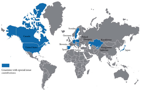 Countries with manuscript contributions in the Special Issue on the Growth and Development of Short-Rotation Woody Crops for Rural and Urban Applications (https://www.mdpi.com/journal/forests/special_issues/growth_development_woody_crops; accessed on 25 May 2022).