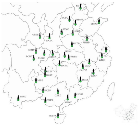 We collected paper mulberry seeds with 33 provenances (Table 1 and Figure 1) and raised seedlings in the greenhouse of the College of Forestry and Landscape Architecture, South China Agricultural University, Guangzhou.