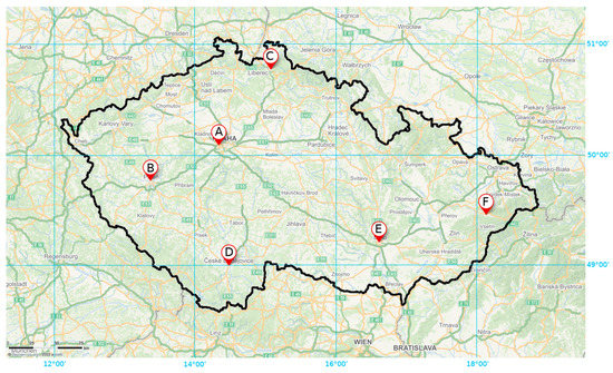 The map of the Czech Republic with marked sites where Aesculus hippocastanum leaf samples were collected. Source: Mapy.cz.