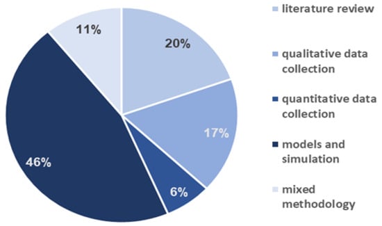 Concerning primary data analysis, a mix of quantitative and qualitative methods is used. Qualitative data collection is applied by 17% of papers, mainly adopting semi-structured interviews and questionnaires, e.g., [38,71,72]. These approaches dominate when researchers aim at detecting factors influencing: (i) decision-making processes related to forest management and silvicultural strategies, and (ii) risk perceptions and mitigation measures implemented by forest-related actors. Direct stakeholders’ involvement (with workshops and participatory actions) was applied in two papers (20% of papers that adopted qualitative data collection) to assess private forest owners’ satisfaction with post-windstorm measures implemented in one case and to develop a decision support tool for managing windthrow in the other [73,74].