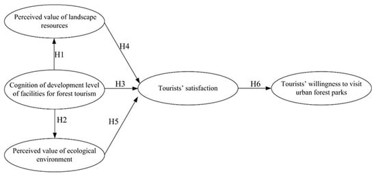 With the pronounced climate change in recent years, there has been a growing focus on the interaction between humans and the environment and the likely impacts of environmental degradation [1,2,3,4]. Visitors’ participation in nature-based recreation can nurture environmental attitudes, and those who hold strong environmental attitudes tend to behave in more environmentally responsible ways [5]. Ecotourism, first proposed by Diamantis [6], has therefore attracted more attention. Ecotourism has long been considered a means of ecological conservation and an efficient mechanism for alleviating conflicts between conservation and development [7,8,9,10,11,12]. Forest tourism is one form of ecotourism. Forest tourism is beneficial for physical and mental health [13,14] and has become more popular in recent years. Urban forest parks, the benefits of which are their superior geographical location and comfortable ecological environment, are a major place for people to carry out forest tourism. With the ongoing development of forest tourism, competition between urban forest parks is increasing. The urban forest parks that leave a satisfactory experience for tourists will be more likely to be favored, which will affect the tourists’ choice of urban forest parks, that is, tourists’ willingness to visit urban forest parks. Therefore, it is of great significance to study how to improve the satisfaction of tourists and then improve the willingness of tourists to visit urban forest parks to promote the development of forest tourism.