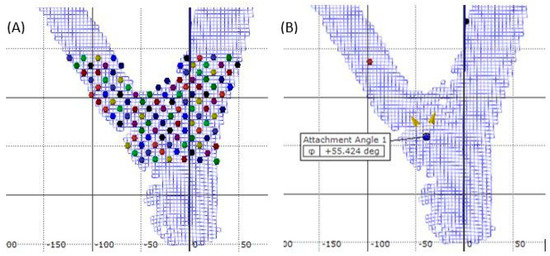 Example of the grid system (A) of test points used for post-processing measurement of and (B) example of the measurement of separation angle using DIC software on codominant red maple.
