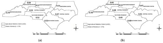 | Mismatch | Share of Forest in Total Area Based on 2011 NLCD | Mismatch | |||