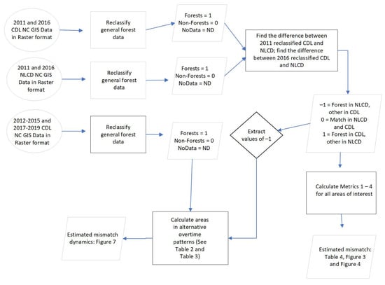 Azubike, C.S.; Kurkalova, L.A.; Mulrooney, T.J. A Comparison of Raster-Based Forestland Data in Cropland Data Layer and the National Land Cover Database. Forests 2022, 13, 1023. https://doi.org/10.3390/f13071023