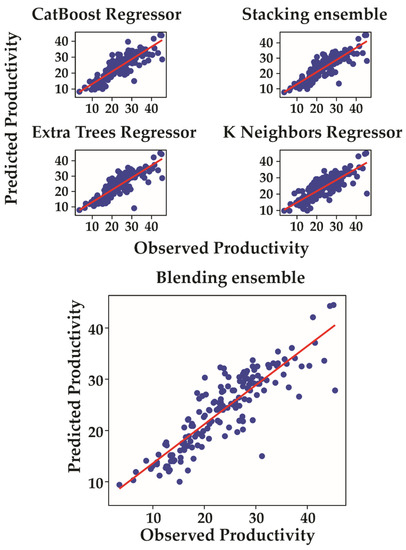 Figure 2 illustrates the performance of the main algorithms used in model construction to predict productivity, relating to observed values.