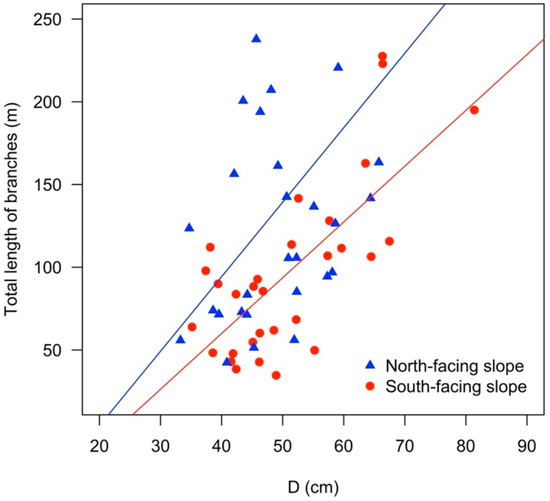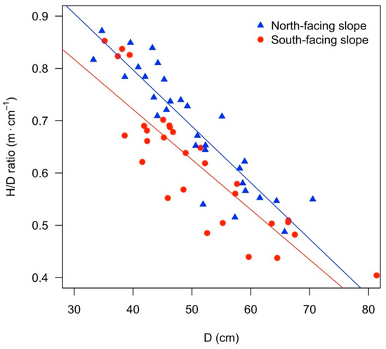 2.3.4. Testing the Differences in Volume Allometry between South- and North -Facing Slopes