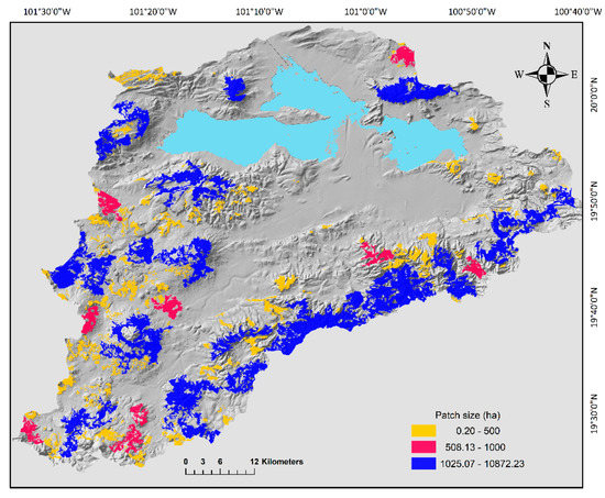 Size (ha) of oak forest fragments in the Cuitzeo Lake Basin. Size categories are shown in the figure.