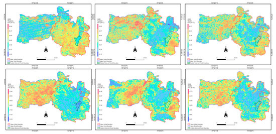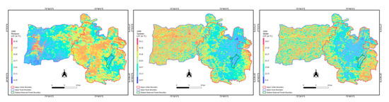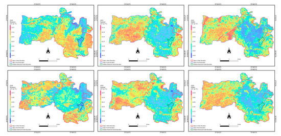 In addition, for visual comparison with maps, the series of maps show season-wise and year-wise LST maps (Figure 11, Figure 12 and Figure 13)