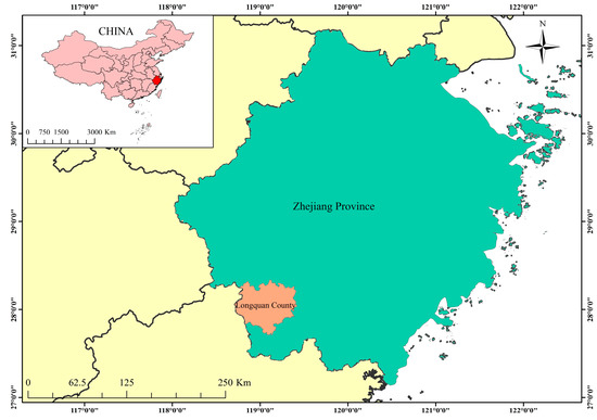 Longquan County is one of the key forest counties (cities) in south China, located in Lishui City, Zhejiang Province, known as the “Forest sea in south Zhejiang” (Figure 1). The County has 265,000 ha of land for forestry, among which forest farmers own 1.2 ha of forestland per capita, 16 times of the area for arable land. According to Zhejiang Natural Resources and Environment Statistics Yearbook, the forest coverage rate of the County is 84.38%, and the forest stock is as high as 19.87 million m3. In recent years, Longquan County continues to deepen the reform of the forest rights system, and has made remarkable achievements in cultivating forestry reform, transferring the system of forest rights and promoting a forestry information integration system. However, most of the rights to use collective forestland are concentrated in the hands of forest farmers, and the economical and intensive management of forestland is not efficient, leading to low forestland quality. This is not conducive to the sustainable management of forestland.
