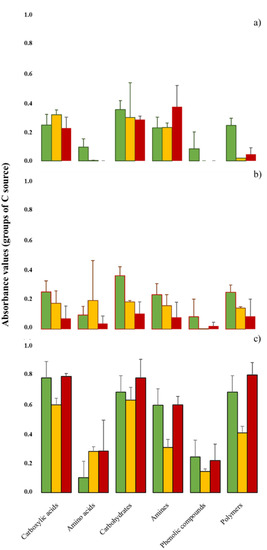 We used BiologTM EcoPlates (Biolog Inc., Hayward, CA, USA) to analyze soil bacterial functional diversity, an approach followed to describe the microbial community-level physiological profiles [52,53]. We characterized the community-level physiological profiles (CLPPs) after 96 h of incubation [21,22,54].