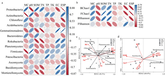 - Feng, H.; Wang, S.; Gao, Z.; Wang, Z.; Ren, X.; Hu, S.; Pan, H. Effect of land use on the composition of bacterial and fungal communities in saline–sodic soils. Land Degrad. Dev. 2019, 30, 1851–1860. [Google Scholar] [CrossRef]