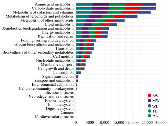 4.4. Prediction of Metabolic Functions of Soil Bacteria under Different Land-Use Types