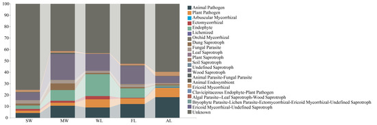 - Nguyen, N.; Song, Z.; Bates, S.; Branco, S.; Tedersoo, L.; Menke, J.; Schilling, J.; Kennedy, P. FUN-Guild: An open annotation tool for parsing fungal community datasets by ecological guild. Fungal Ecol. 2015, 20, 241–248. [Google Scholar] [CrossRef]