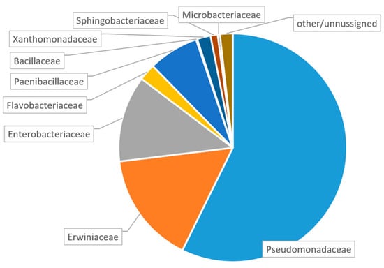 The dominant families in our samples were Pseudomonadaceae, Erwiniaceae and Enterobacteriacea. The same families were also dominant in the USA samples according to Vasanthakumar et al. [] and in the Chinese samples according to Liu et al. [].