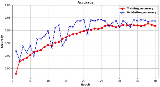 The convergence curves of the loss function and the recognition accuracy with the number of iterations are shown in Figure 8 and Figure 9. It can be seen that the performance of the proposed network in the validation set also improved, reflecting its relatively reliable generalization performance.