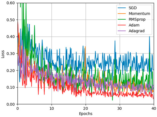 To further explore the impact of training methods on recognition accuracy, this study used different activation functions and optimizers for the testing, and the results are shown in Table 9. The experimental results show that the best recognition effect was provided by the combination of Mish and Adam. A schematic diagram of activation functions and the convergence curves for different optimizers are shown in Figure 11 and Figure 12, respectively.