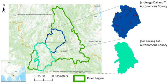 - Pu’er-Municipal-People’s-Government. Geographical Environment (Translated). Available online: www.puershi.gov.cn (accessed on 4 March 2022).