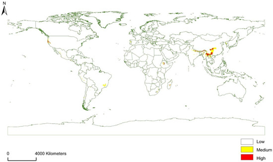 - Phillips, S.J.; Anderson, R.P.; Schapire, R.E. Maximum entropy modeling of species geographic distributions. Ecol. Model. 2006, 190, 231–259. [Google Scholar] [CrossRef] [Green Version]