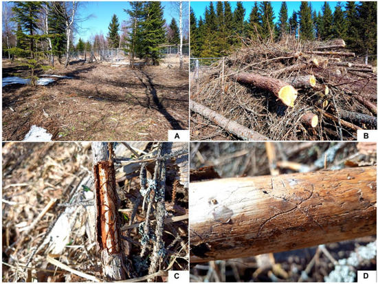 - Ząbecki, W.; Kacprzyk, M. A potentiality of using spruce branches left in the forest after incidental cuttings to attract Pityogenes chalcographus (L.). Beskydy 2007, 20, 185–192. [Google Scholar]